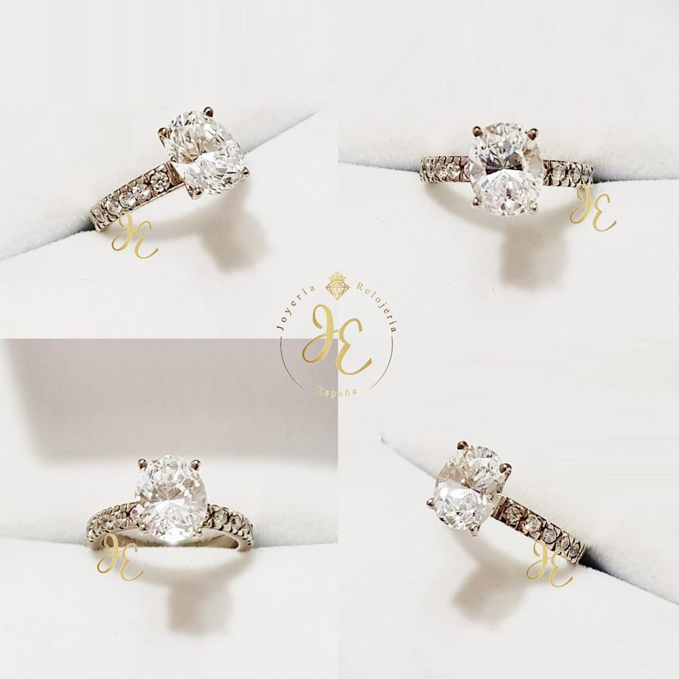 Anillo con Piedras Swarovski Corte Oval Central y Redondos Laterales .