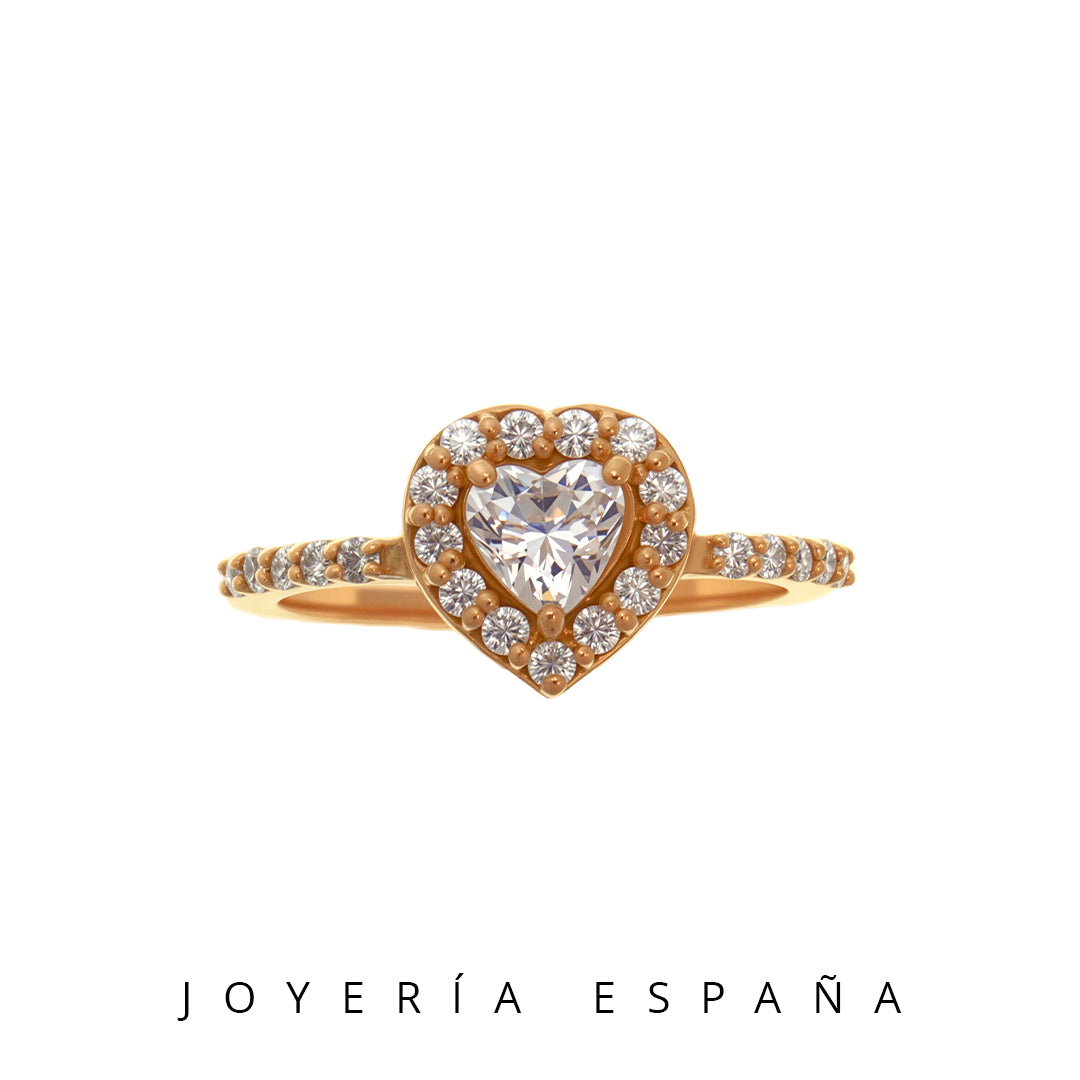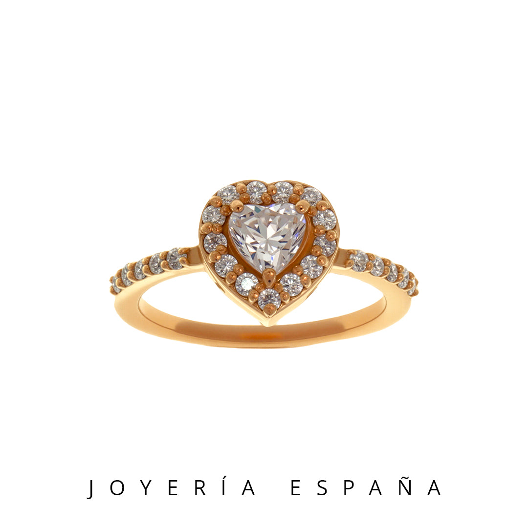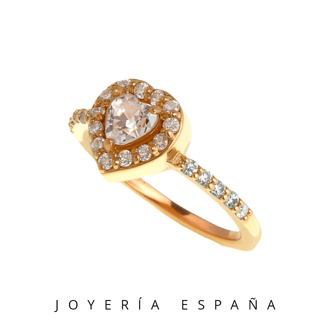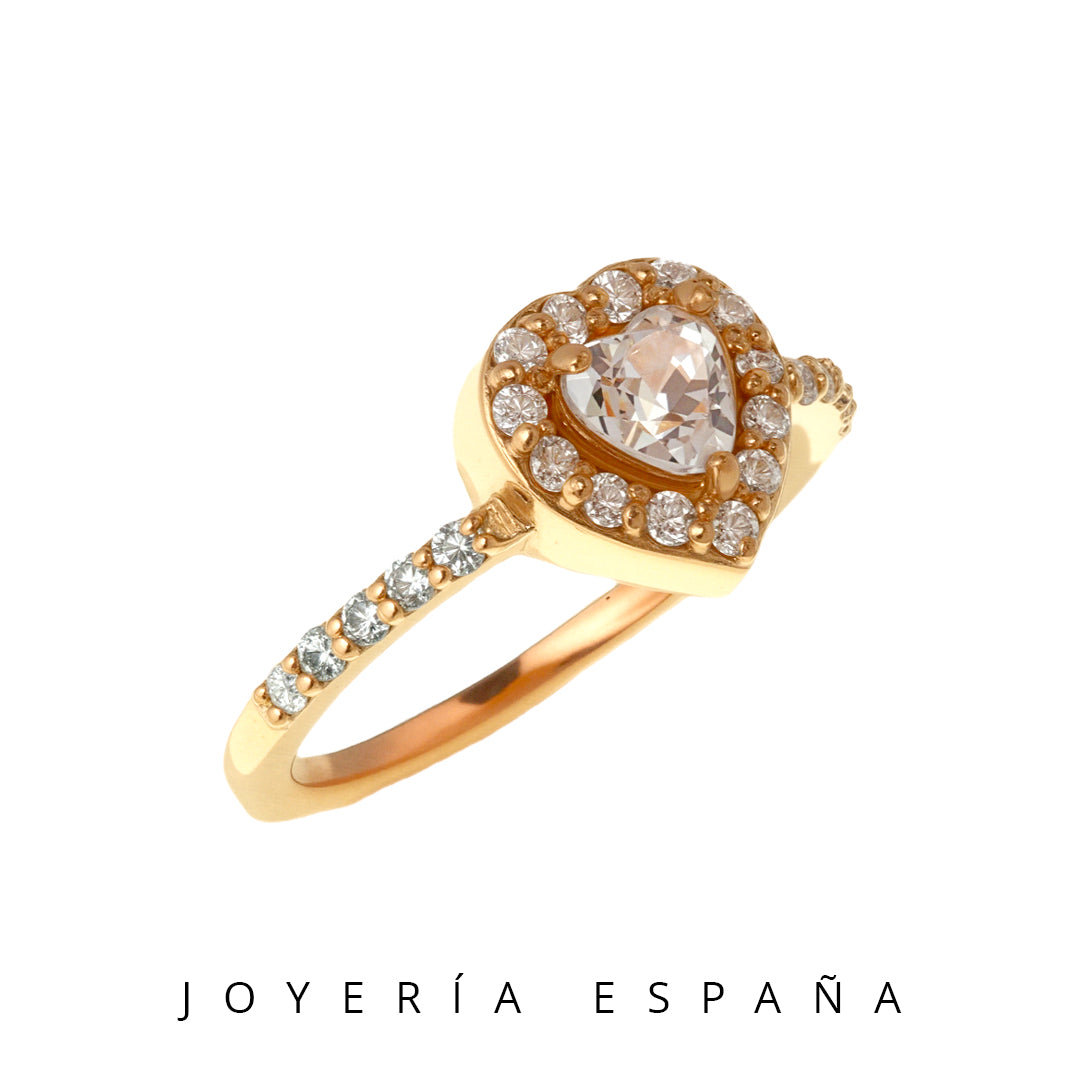 Anillo con Piedras Swarovski Corte Corazón Central y Redondos Laterales .