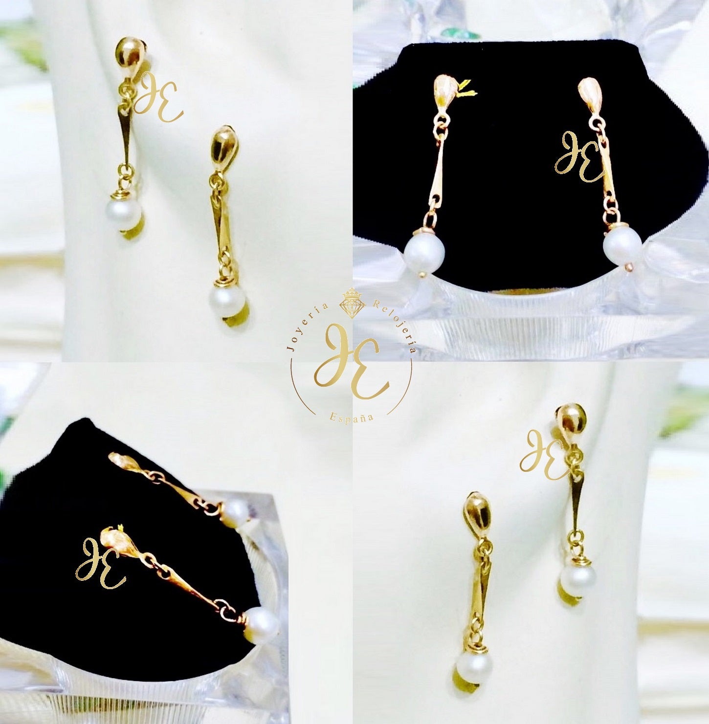 Arete Colgante con Perla Cultivadas de 4 mm aprox. en oro ley 18k legitimo