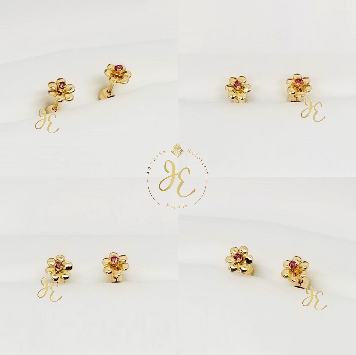 Aretes Modelo "Flor" con Rubí Fino en oro clásico ley 18k legitimo está 500 soles.