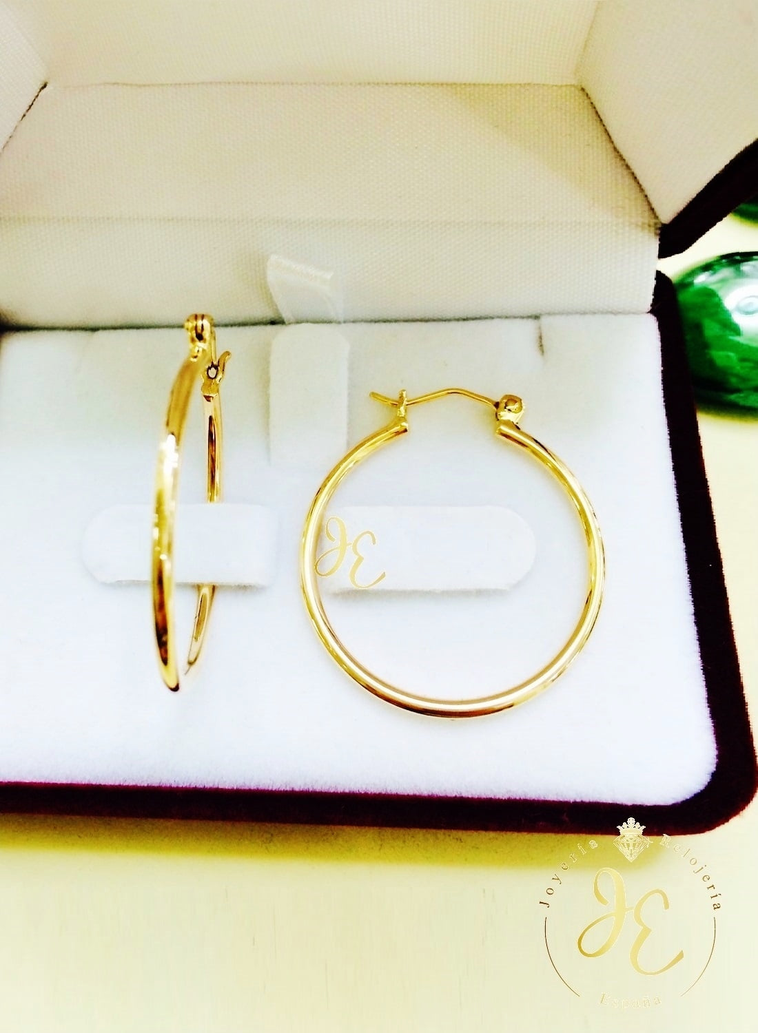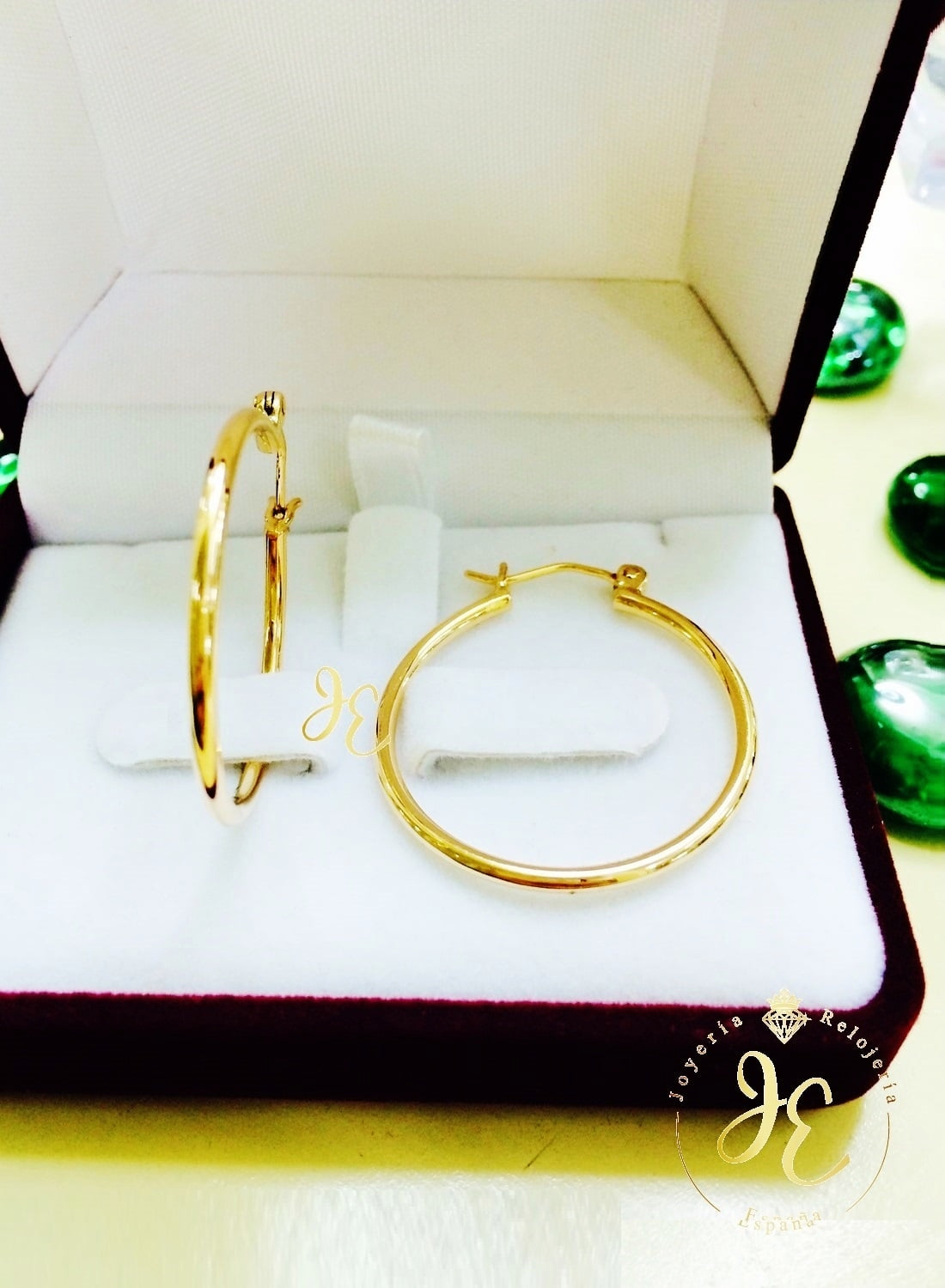 Argollas Modelo Circular de 27 mm. aprox. de diámetro interior en oro ley 18k legitimo.