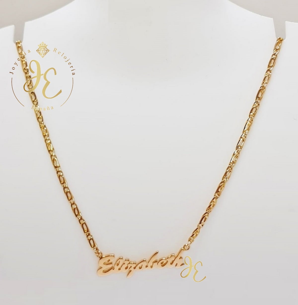 Collar Modelo Mónaco de 45 cm. con Nombre "Personalizado" en oro clásico ley 18k legitimo.