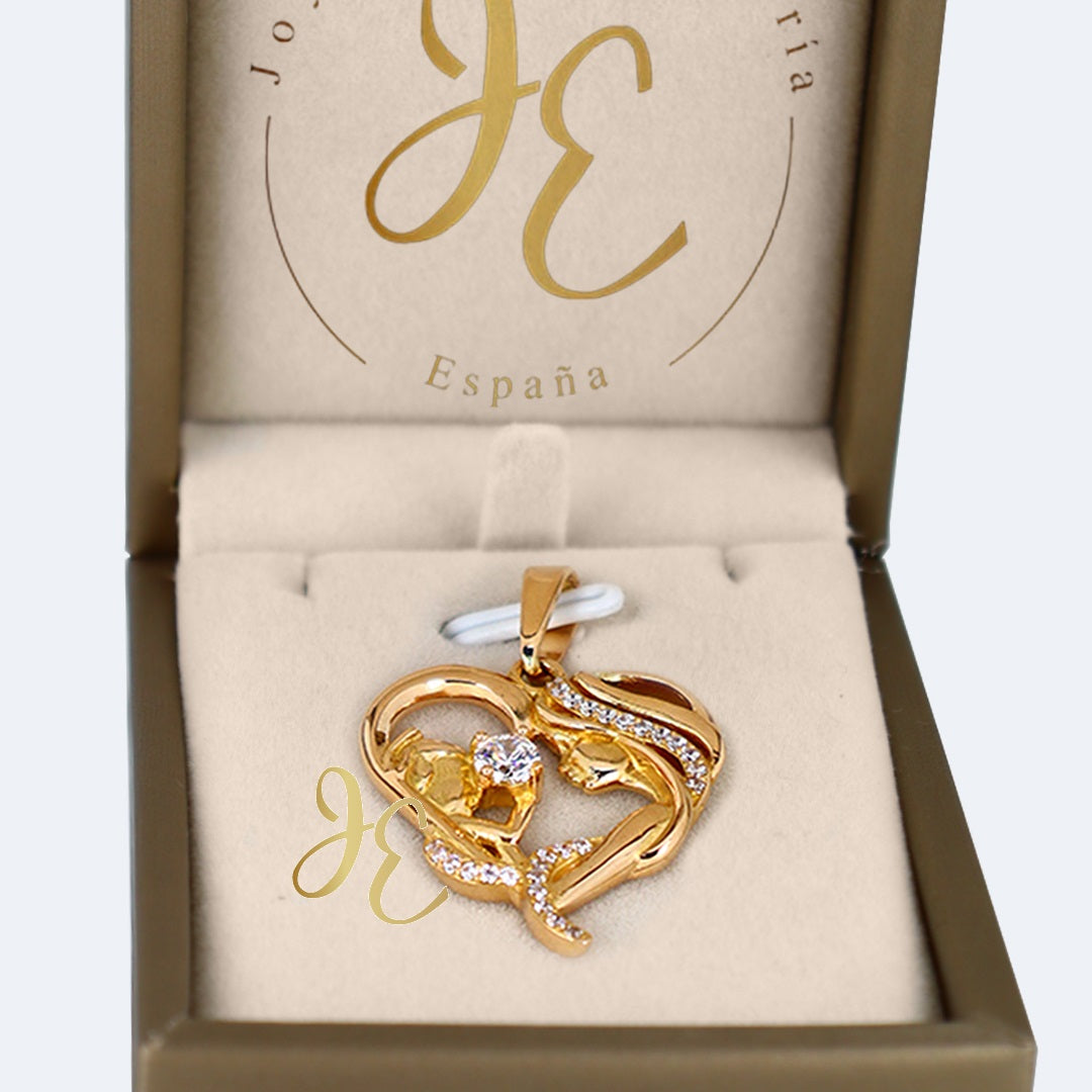 Dije Modelo "Corazón de Madre e Hijo" de 2.7 cm. aprox. en oro clásico ley 18k legitimo.