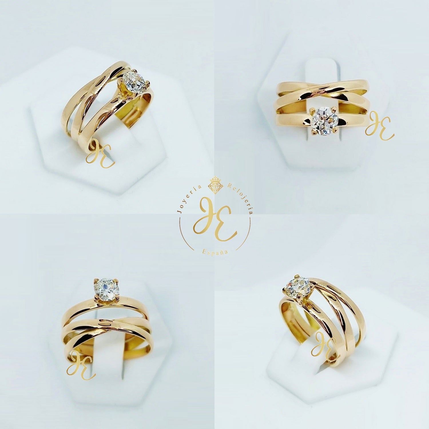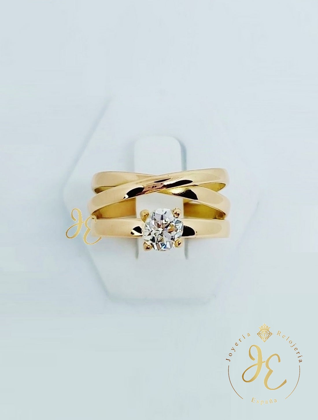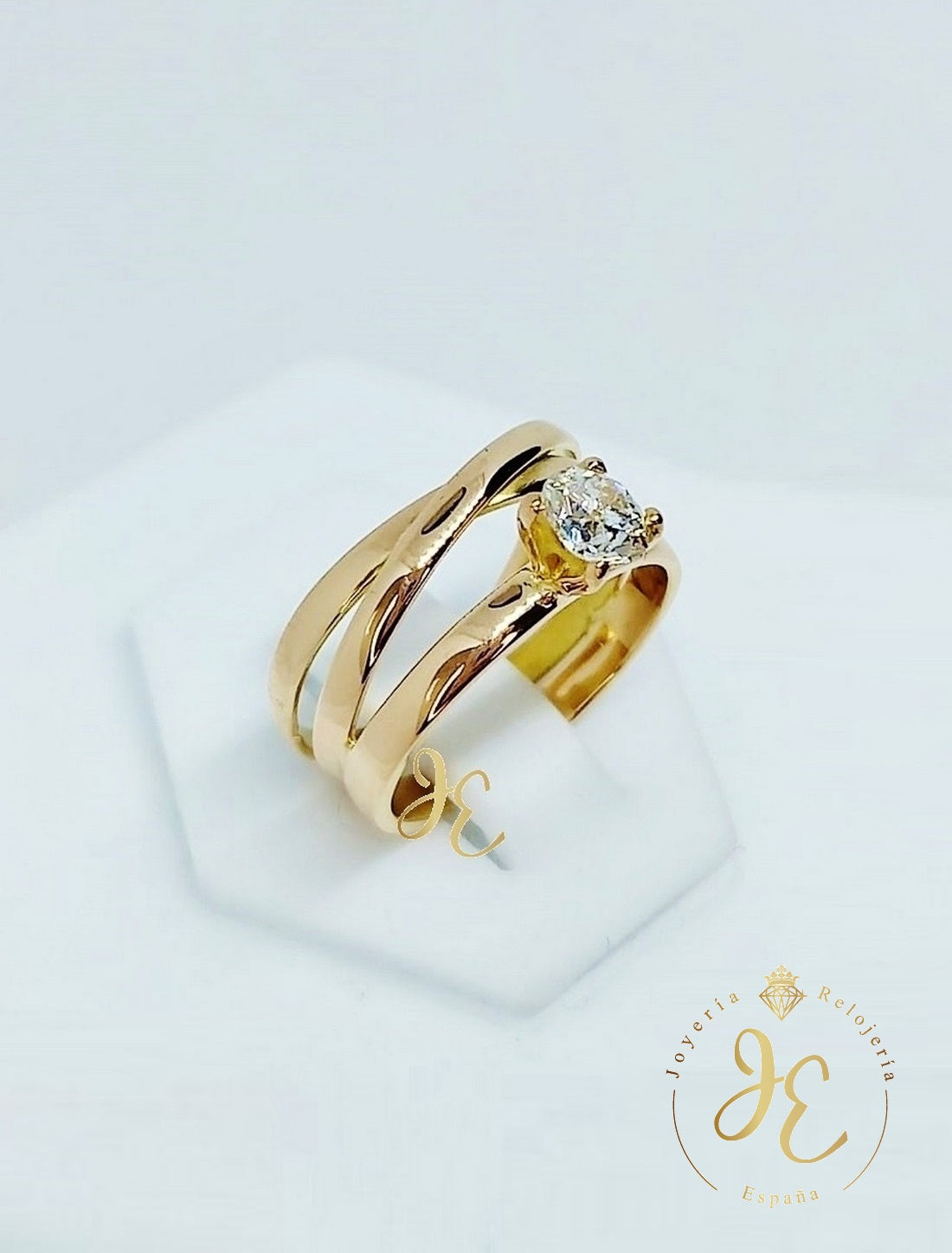 Sortija fina y elegante, Modelo Elegante con Brillante Suizo Fino en oro clásico ley 18k legitimo.