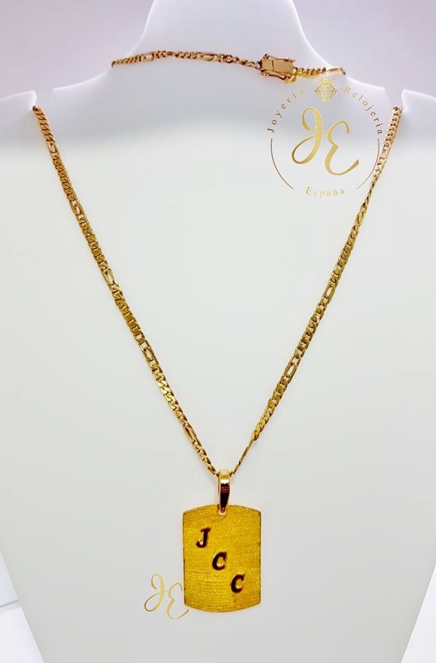 Cadena Elegante Modelo "Lomo corvina con Doble" de 55 cm. con Placa Corte Satinado e Iniciales Personalizadas en oro cásico ley 18k legítimo está 7,820 soles-