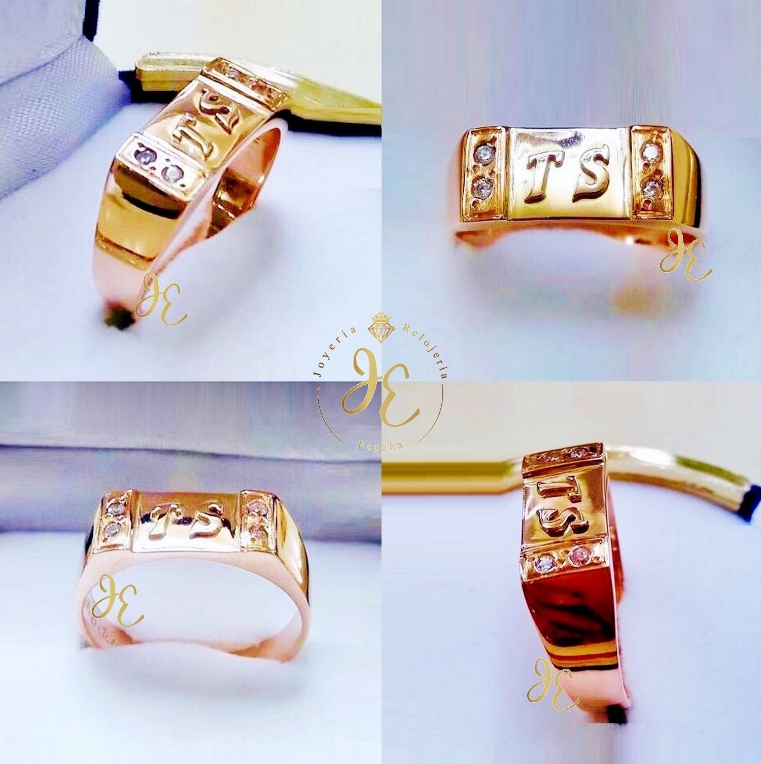 Anillo para Caballero con Iniciales Personalizadas y Brillantes Suizos Finos en oro ley 18k legítimo