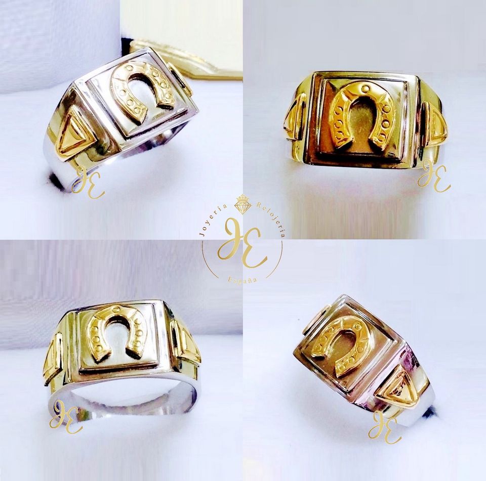 Anillo Elegante Modelo Herradura con detalles en oro clásico y blanco ley 18k legítimo de 15 gr. aprox.