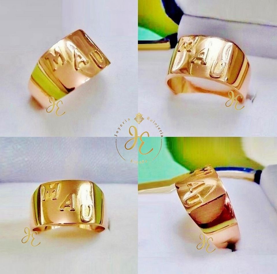 Sortija Elegante con 3 Iniciales Personalizadas en oro clásico ley 18k legitimo.
