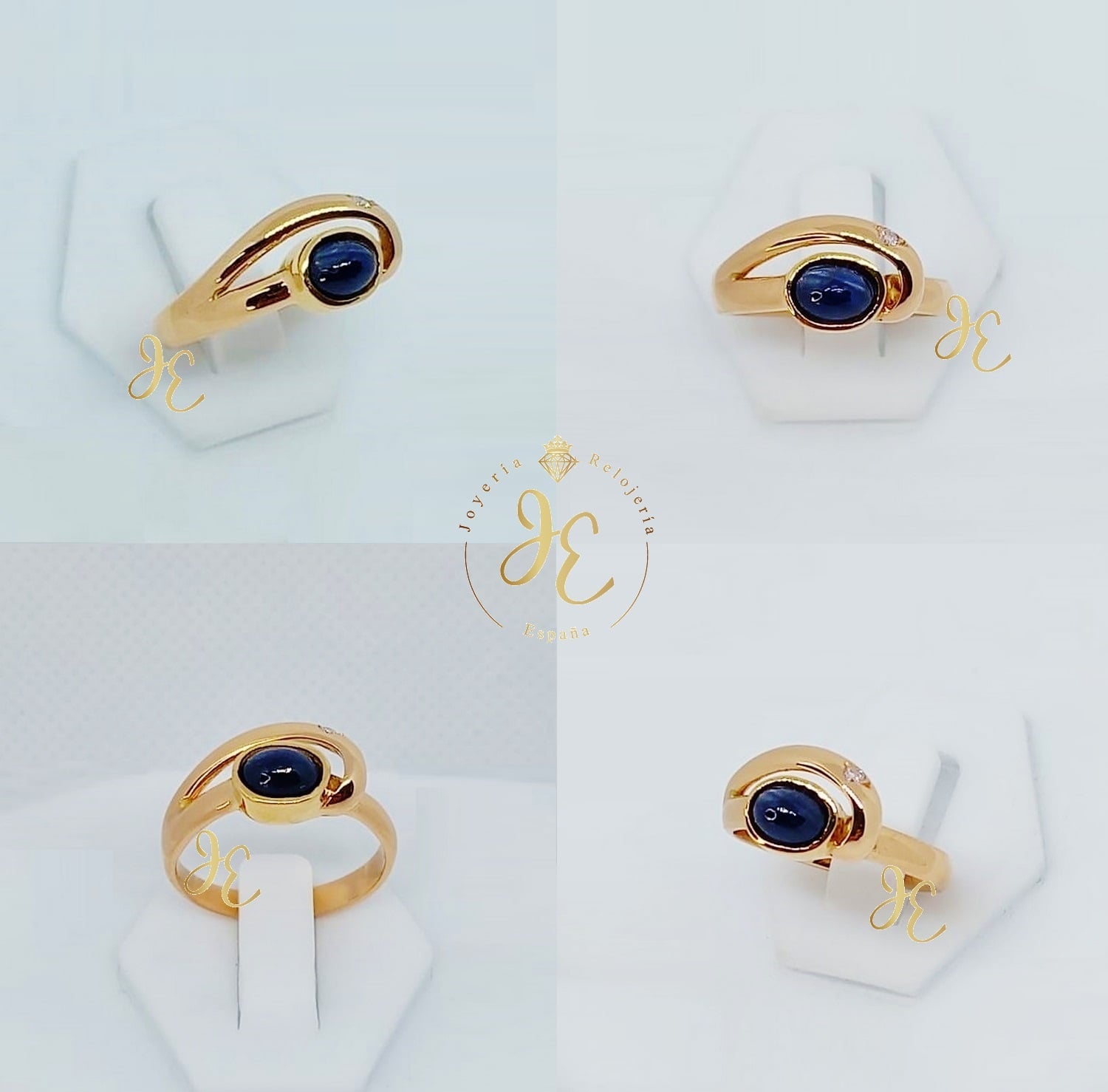 Sortija fina y elegante, con Zafiro Azul Cabujón de 1.50 ct. aprox. y Diamante Original en oro ley 18k legitimo está 850 dólares.