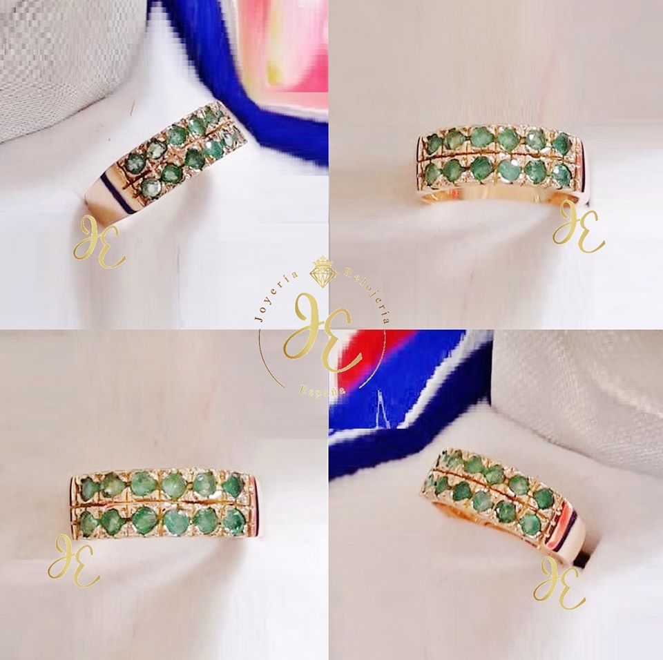 Sortija fina y elegante, con 12 Esmeraldas Originales de 0.06 ct c/u aprox. en oro ley 18k legitimo