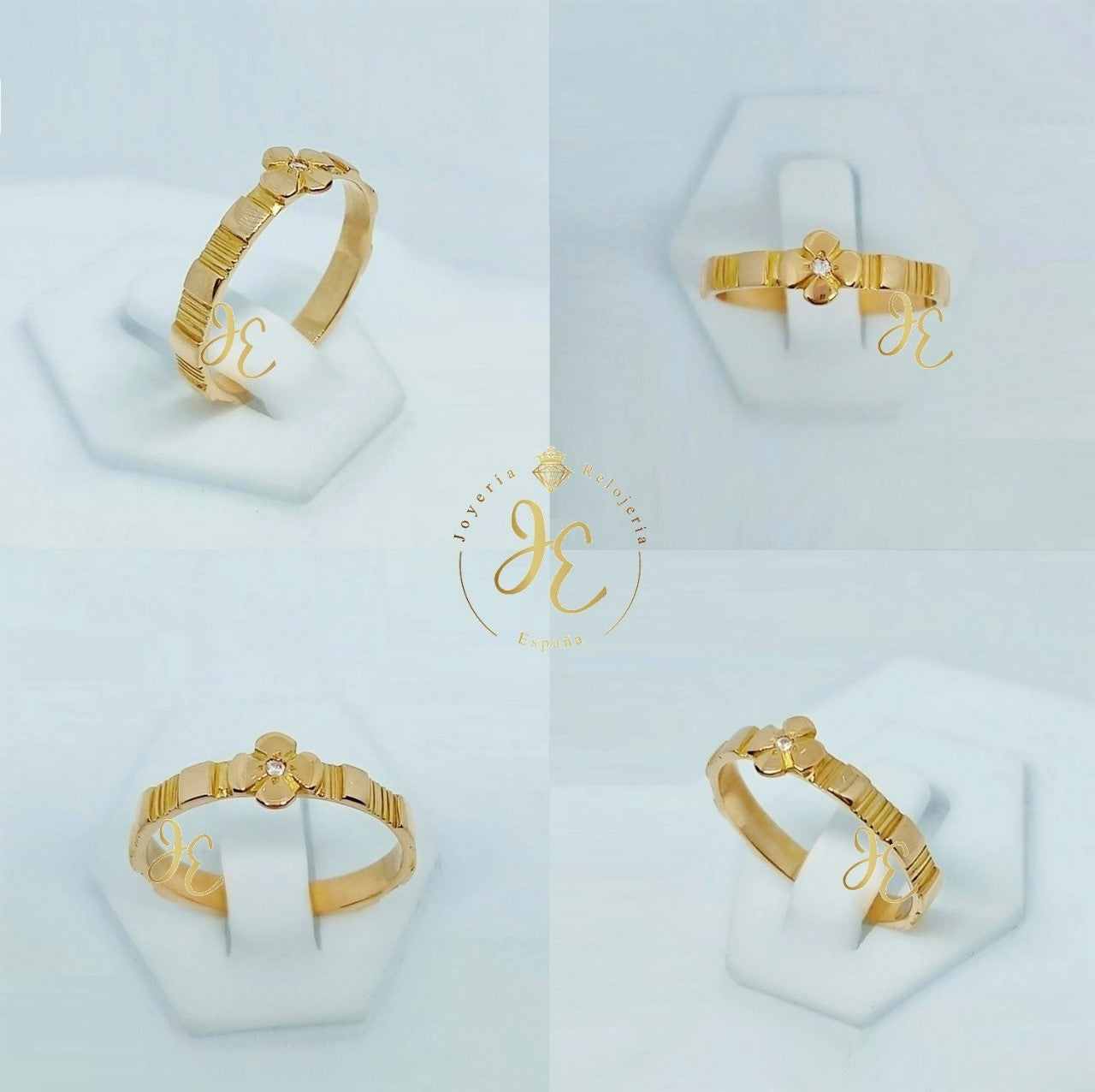 Sortija fina y elegante, Modelo "Denario" con Brillante Suizo Fino en oro clásico ley 18k legitimo.