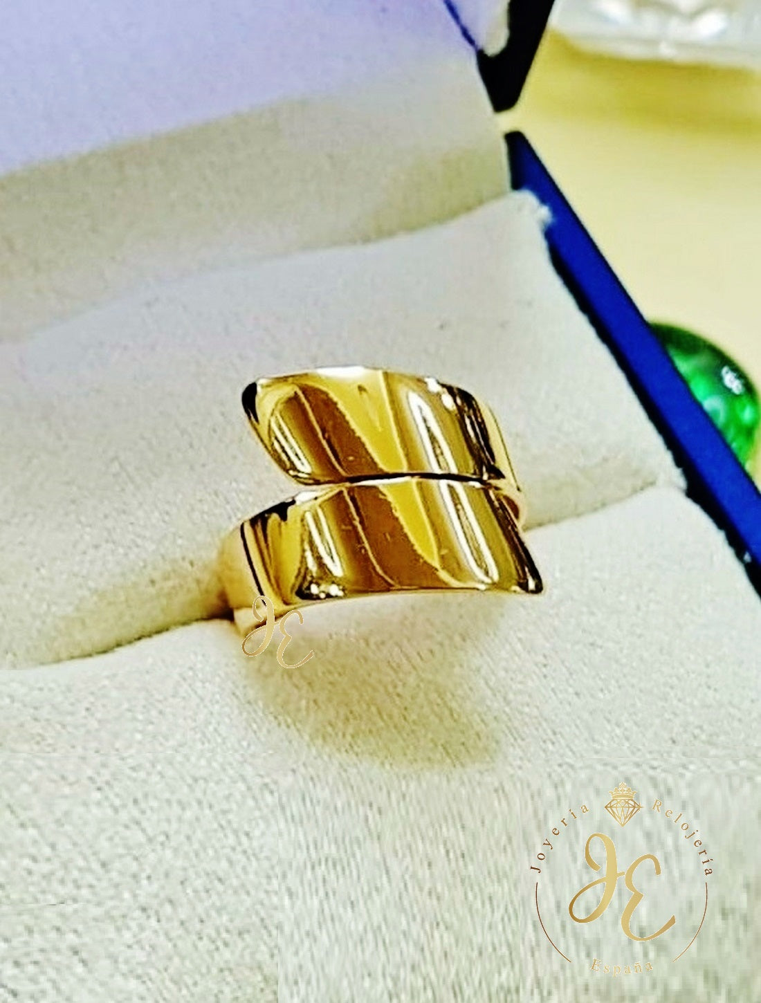 Sortija fina y elegante, Modelo Crossed en oro clásico ley 18k legitimo de 12 gr. aprox.