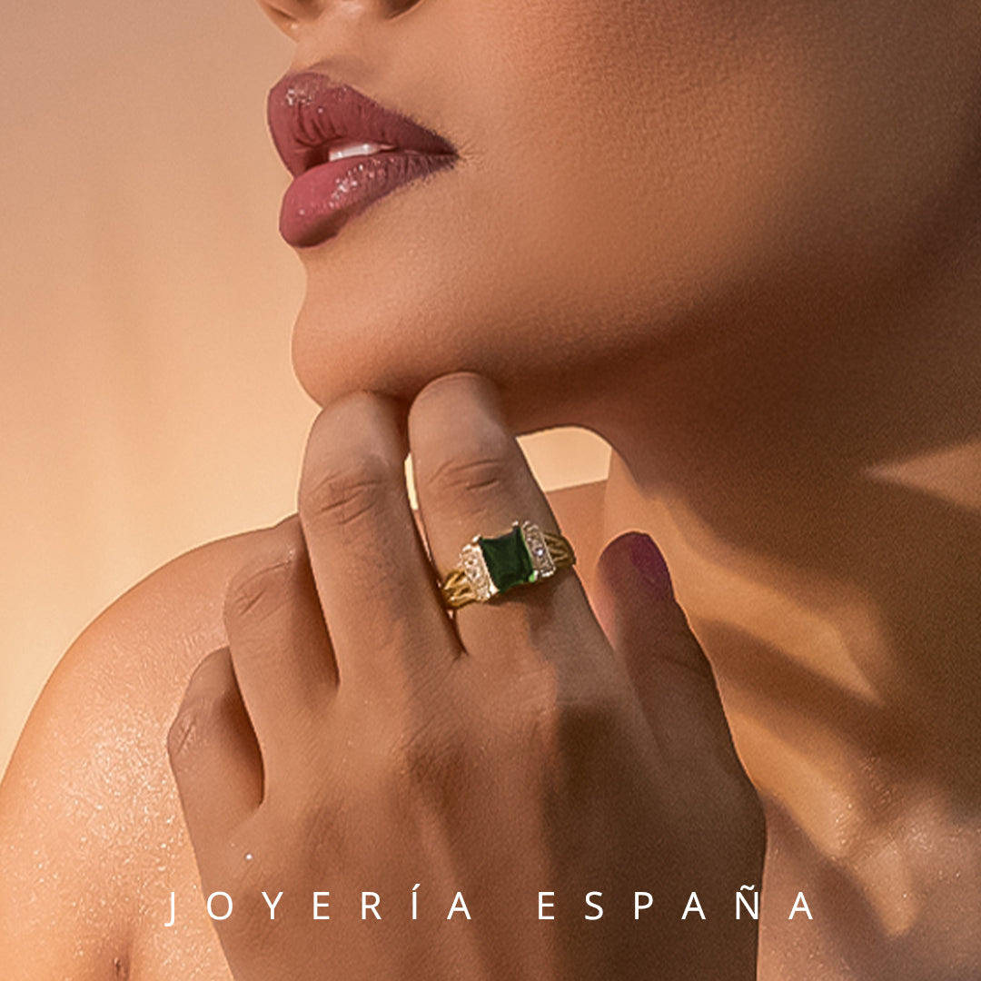 Sortija Elegante, Modelo "Angelina" con Piedra Peridot Fino y Swarovski en oro clásico ley 18k legitimo está 1,720 soles.