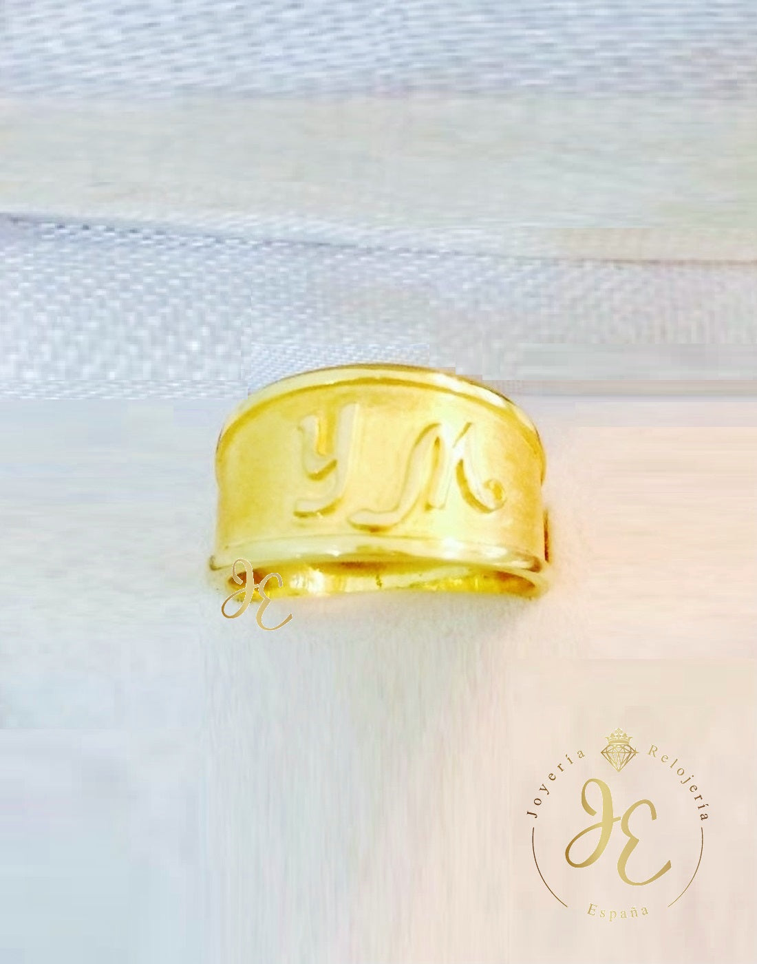 Sortija fina y elegante con Iniciales Personalizadas en oro amarillo fino ley 21k.