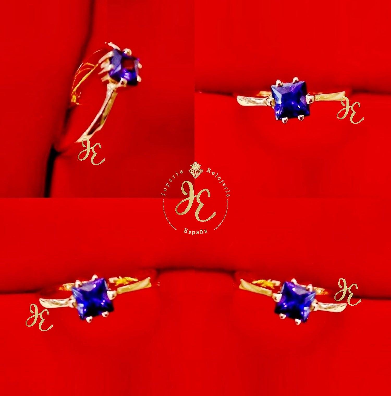 Sortija fina y elegante , Con Amatista Fina Corte Princess en oro ley 18k legitimo