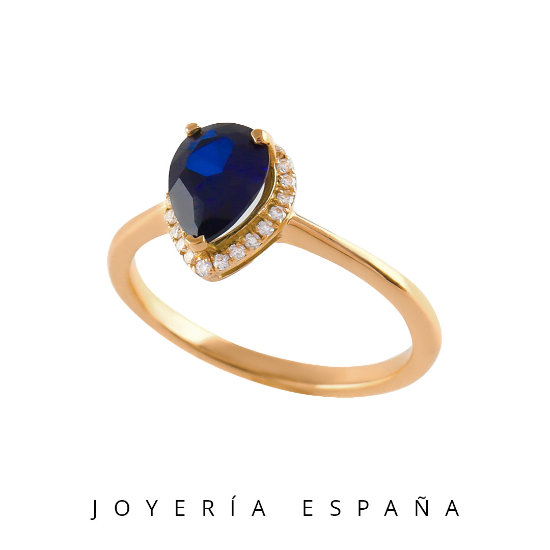 Anillo con Zafiro Azul Fino y Piedras Moissanite.